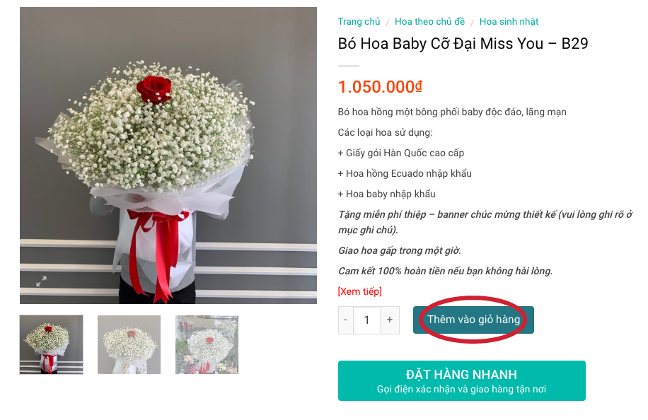Bước 1: Chọn Đặt hàng nhanh dưới mỗi sản phẩm lựa chọn.