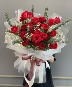 Bó hoa Real Love size L là bó hoa tone đỏ rực rỡ, cuốn hút mang phong cách trẻ trung, hiện đại. Với ý nghĩa tượng trưng cho tình yêu nồng nàn, bền chặt, Bó hoa đã làm nổi bật lên hình ảnh những bông hoa hồng đỏ truyền kì, để ngay khi nhận hoa Nàng có thể đoán ra tình cảm của chàng rồi!