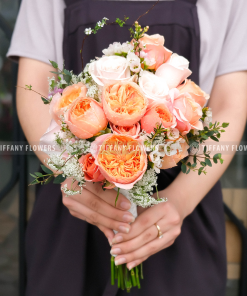 Retro Love là mẫu hoa tay dáng Posy được yêu thích bởi các cô dâu nên không bao giờ khiến bạn trở nên lỗi mốt. Thêm vào đó, tone màu cam hồng được chuyển màu và kết hợp hài hòa tạo nên hiệu ứng thị giác bắt mắt. Trên nền chiếc váy cưới xinh xắn. Retro Love sẽ trở thành điểm nhấn nổi bật cho cô dâu xuất hiện rực rỡ trong mọi khung hình.