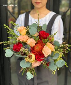 Combo hoa cưới GB MS17 với tone đỏ quyền lực và tone cam đầy thu hút chính là tâm điểm của đám cưới mùa thu 2019. Sự tinh tế được thể hiện ở việc kết hợp xen kẽ cỏ Nam phi mang đến hơi thở ấm áp cùng nét trầm bổng, khó phai.