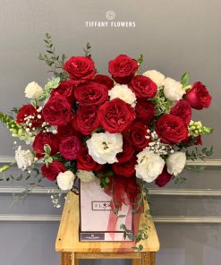 Hộp hoa Vivi tone đỏ mang sắc thái trầm bổng, quyến rũ, tựa như lời tỏ tình thầm kín, ngọt ngào mà các cặp đôi vẫn dành cho nhau